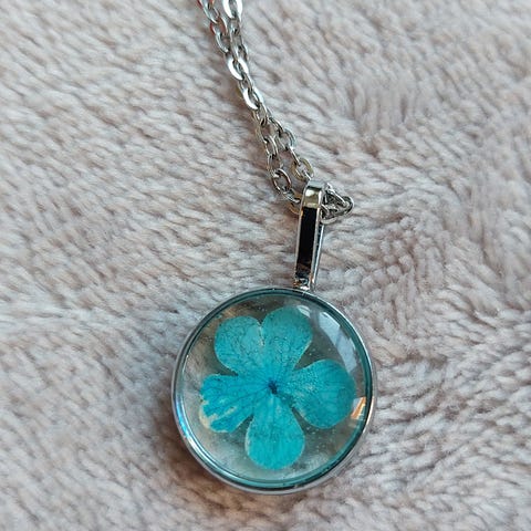Dette halskjedet er håndlaget og forseglet med epoksyharpiks/resin