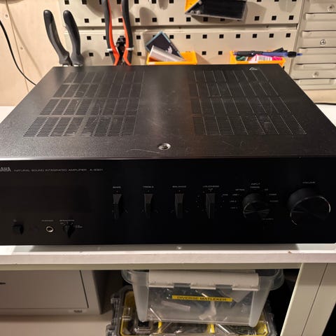 Forsterkeren har noen bruksmerker og mangler fjernkontroll, og selges derfor rimelig.