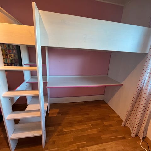 Køyseng inkl madrass selges. Madrassen har en kulepennflekk på langsiden (ikke synlig når madrassen ligger i sengen). Utover det, ingen flekker/uhell.