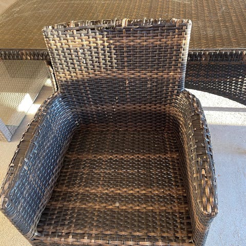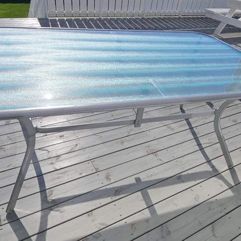 Utemøbel i flettet materiale med glassplate. Møbelet har en rektangulær glassplate som bordflate og flettet ramme rundt. Passer til bruk utendørs størrelse . 95 x 40 x 50.