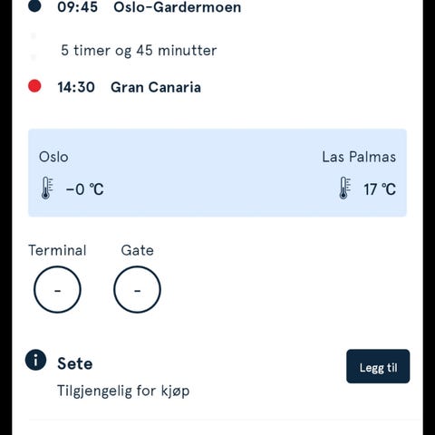 Flybillet Oslo-Gardermoen - Gran Canaria 13. januar