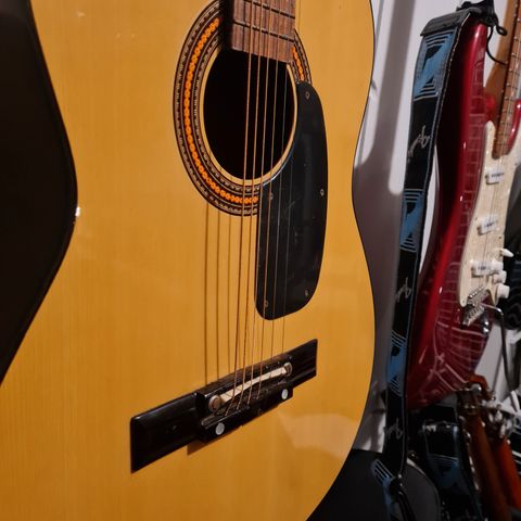 Sangwha halvakustisk gitar med sunburst-finish. Gitaren har innebygd elektronikk med equalizer for forsterkning. Gitaren er pent brukt og i god stand, noe bruksmerker finnes. Det følger med en guitarbag.