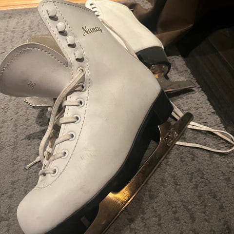 Nancy Andre skøyter i størrelse 35 for barn. Skøytene er hvite og egnet for generell skøyting. Godt brukt, men mye bruk igjen. Jenta mi har vokst fra de så derfor selges de. Hentes etter avtale. Sender ikke.