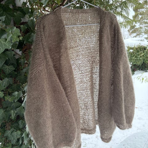 Sunday cardigan, mohair edition fra den danske strikkedesigneren petiteknit, strikket med 3 tråder mohair, farge mørk brun🤎✨ profesjonelt strikket.