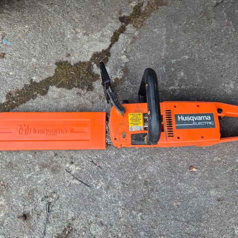 Husqvarna motorsag med kjede og motor for effektiv trefelling og beskjæring.