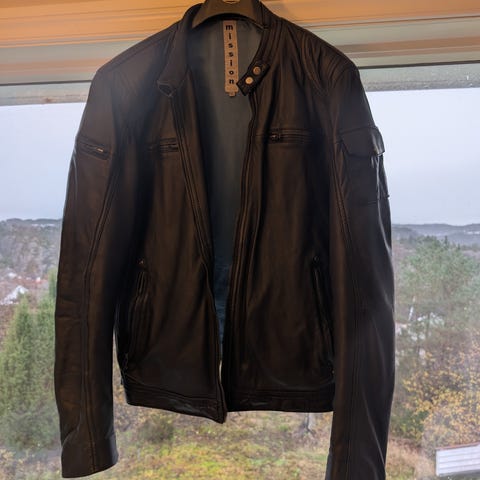 Skinnjakke. Den er ny men åpnet. Størrelsen er oppgitt til XL men den er altfor liten til meg selvom jeg ikke akkurat er noen he-man. Enkel pen form, glidelås. kr 500 frakt tilkommer.