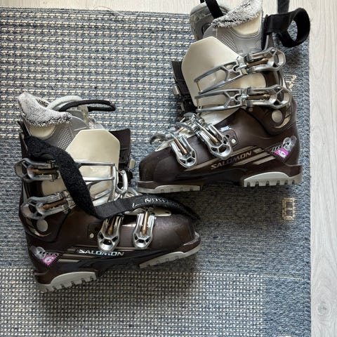 Tilstand: Skiene er i god stand med normale bruksmerker på oversiden. Sålene er fine og klare for nye turer i bakken.