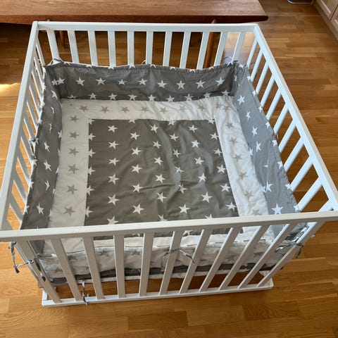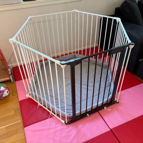 BabyDan lekegrind laget i svart metall. gir et trygt område for lek