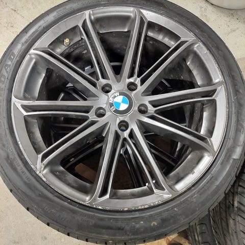 Komplette hjul med ca 8mm mønster, inpress er et20, passer eldre bmw 5 serie perfekt