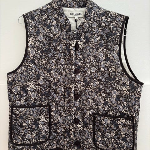 Verdens fineste vest fra Lollys Laundry vurderes solgt🌸 Den har fantastiske farger og detaljer. Pent og lite brukt! Yttermateriale og innermaterialet er i bomull mens fyllet i vatteringen er polyester. Laget i India!