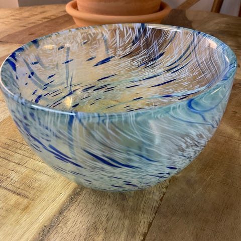 Flott skål, vintage, ‘flowerpot Danmark Norge’. Mønster av skjell i fasongen.