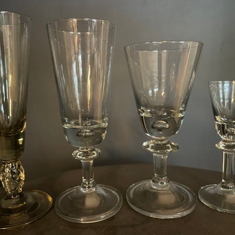 6 champagne glass selges. 175 per stk.