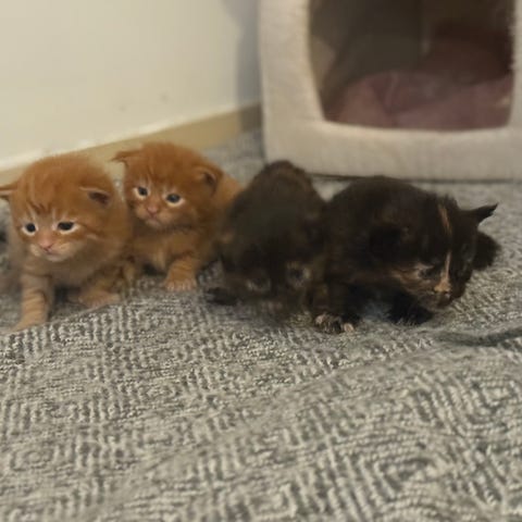 Kosen kattunge ser ut som det er ei jente. Vokser opp i stuen her og går i kattesand Levingsklare i slutten av jannuar ca