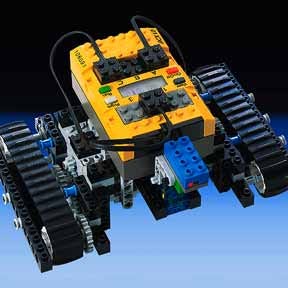 LEGO Mindstorms robotbyggesett med flere deler og komponenter. Inkluderer en NXT sentralenhet med skjerm og knapper, samt ulike tekniske byggeelementer. Settet egner seg for bygging og programmering av robotmodeller.