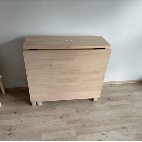 Hvitt praktisk bord fra Ikea med klaffer som kan legges helt ned så bordet blir veldig smalt eller man kan slå opp den ene siden eller begge sidene.