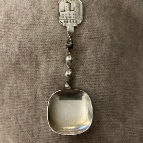 Oslo Monolitten souvenirskje/syltetøyskje Sølvplett