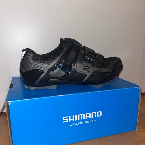 Shimano RC3 sykkelsko i størrelse 42, svart farge. Skoene er designet for landeveis sykling og har feste for klikkpedaler under sålen, hvor det står på look keo cleats nå. Disse følger ikke med.