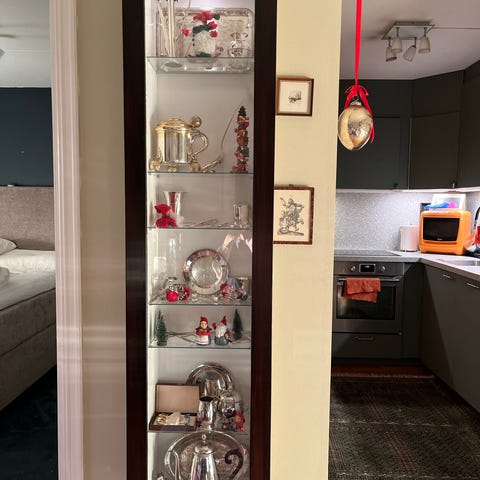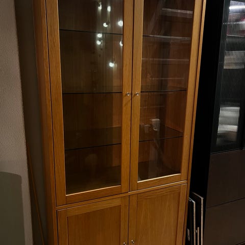 Vitrineskap med lys selges. Stått lagret i bod i 7 år. Kan hentes på Storo i Oslo eller i Asker. Ingen synlige skader. Ta kontakt dersom du har spørsmål.
