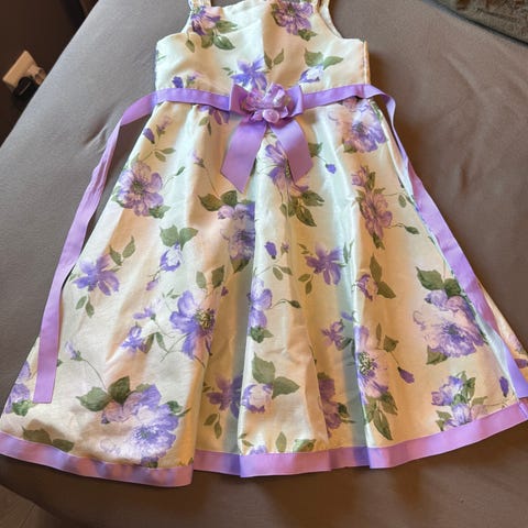Beige kjole med paljetter og sløyfe bak, fra Name it, strørrelse 122, 7 år, kun prøvd på