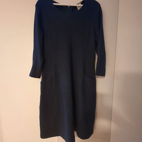 Jean Paul Kine kjole i blå farge, størrelse XL. Kjolen er laget av viskose, med ytterstoff i 100 % viskose og fôr i 100 % polyester. Den har lange ermer og elastisk midje.