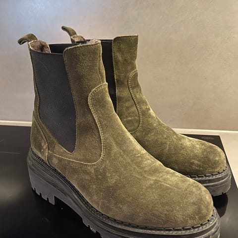 & Other Stories vinterstøvler i størrelse 38. Støvlene har en beige farge og er foret med mykt materiale for varme. Egnet til bruk i kalde værforhold.