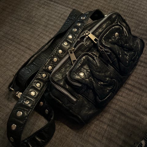 Lær veske fra Nunoo, kan brukes uten kjede som en clutch, ingen skader