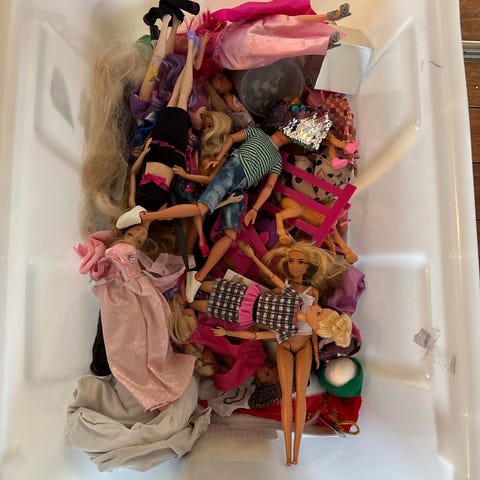 Barbie dukker med ulike klær og tilbehør. Inkluderer flere dukker med forskjellige antrekk og tilbehør som sko og vesker.