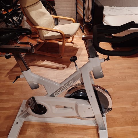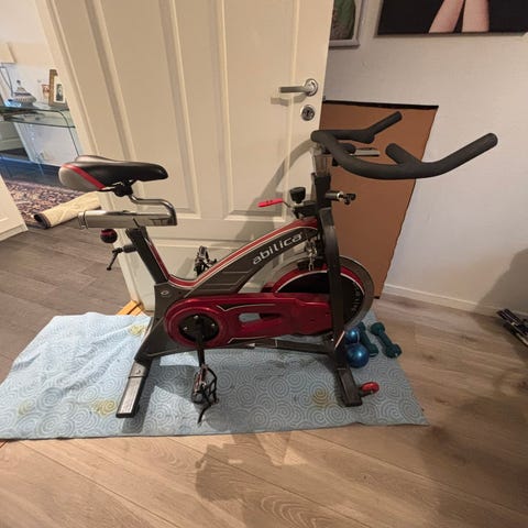 Abilica Spinning sykkel med justerbart sete og styring. Utstyrt med motstandskontroll og stoppefunksjon. Passer for innendørs trening.