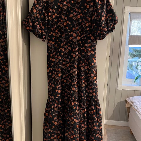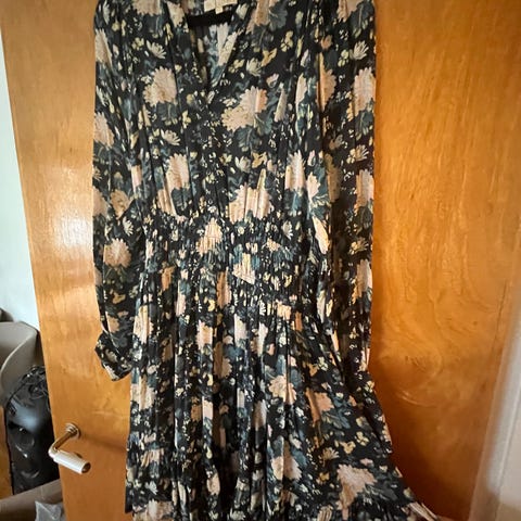 MISSMAYA. Superfin kjole i flerfarget bomull, størrelse M. Kjolen har et mønstret design, underskjørt og lommer.