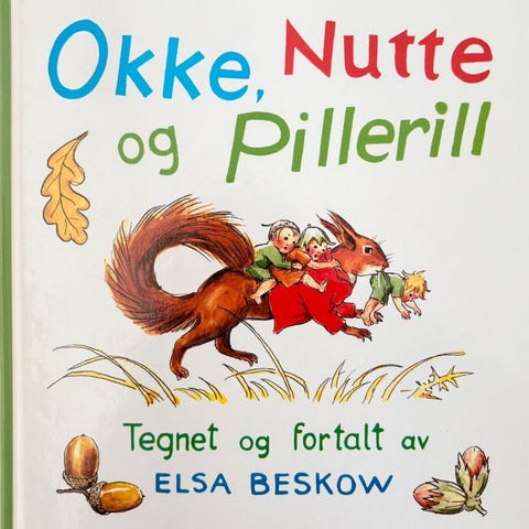 🔍 Søkeord: Elsa Beskow, Okke Nutte og Pillerill, barnebok, bildebok, klassisk barnebok, høytlesning, eventyr, retro barnebok, DAMM