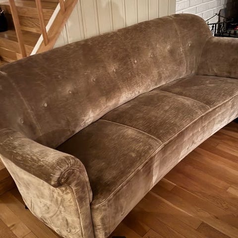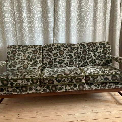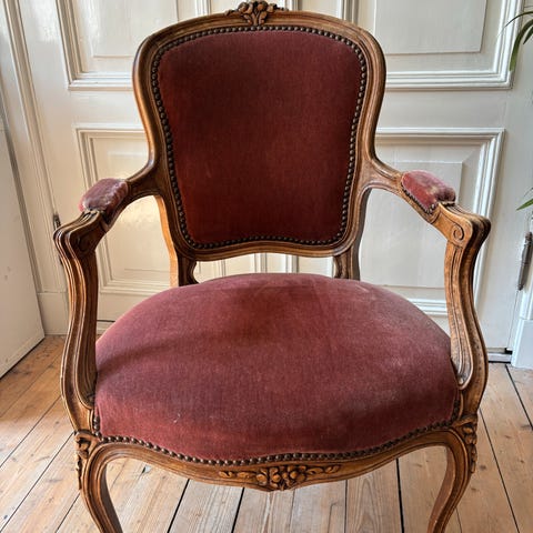 Pent brukt velurstol selges billig. Nydelig retro frysjer og veldig behagelig å sitte i. Puter kan løftes så lett å støvsuge og holde fin. Lett - så enkel å frakte