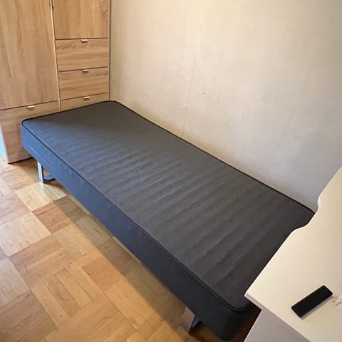 Selger lite brukt gjesteseng 90x200 cm da den skal byttes ut med en større. Sengen har en oppbevaringsløsning under madrassen som løftes opp for tilgang til lagringsplass. Kjøpt for omtrent tre år siden og lite brukt. Overmadrassen kan følge med, den ser ut som ny,