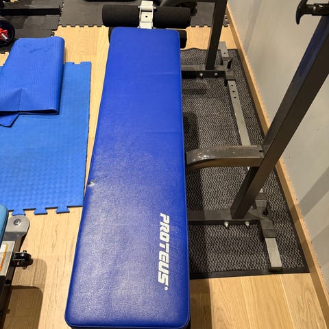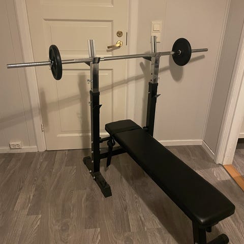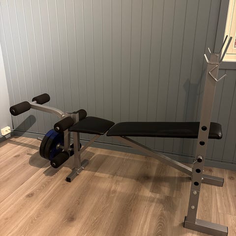 Treningsbenk med vektstang og vektskiver