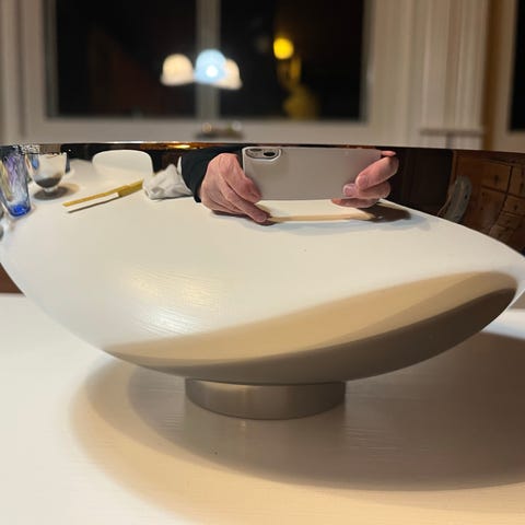 Medium dekorativ bolle/skål i blankt rustfritt stål.