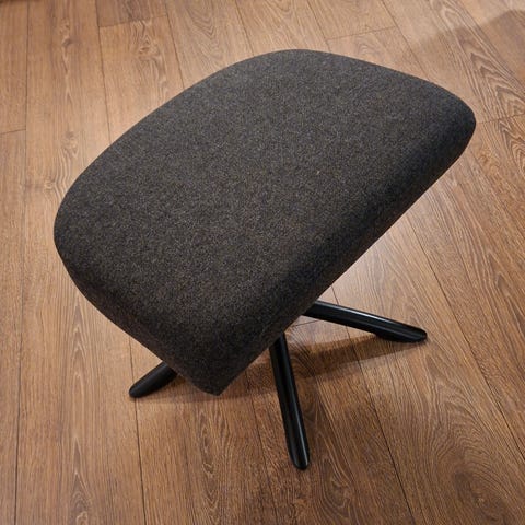 Praktisk pall / puff i grått kvalitets ullstoff med ben i børstet stål selges.