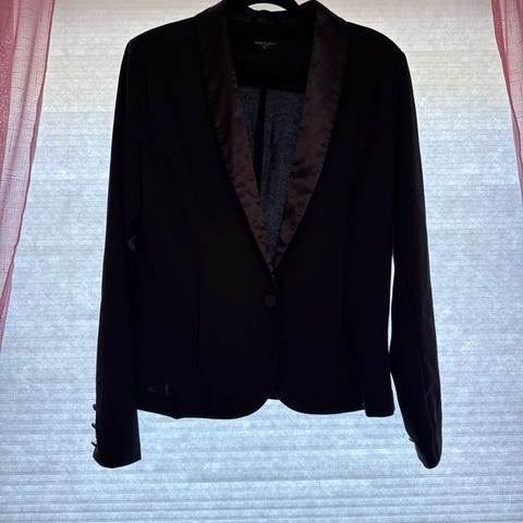 Freequent blazer i størrelse M, svart farge. Jakken har ermer i annet materiale som gir et unikt utseende. Egnet for kvinner.