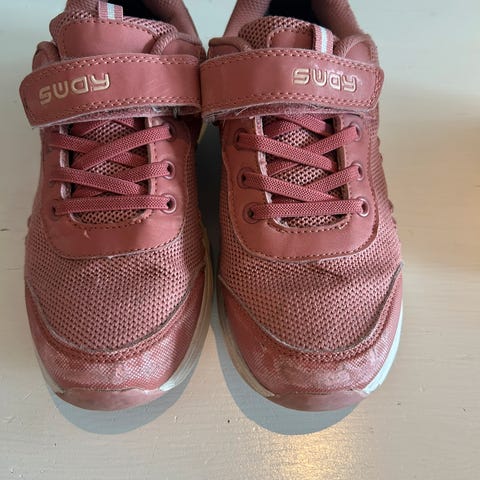 Godt brukte joggesko for barn, i skostørrelse 37, selges. Noe slitt, som vist på bildene, ellers brukbart. I fargen rosa.