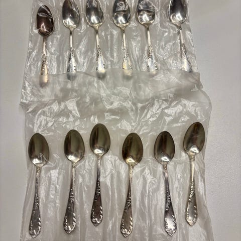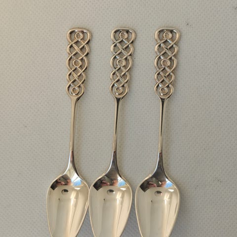 T Martinsen sølv skje med dekorativt mønster. Laget av sølv, egnet for samling eller bruk som bestikk. 35g 925s, gi gjerne bud