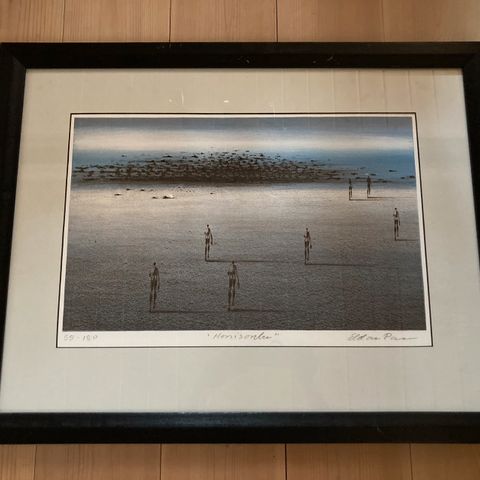 Stort og pent innrammet linotrykk med glass, av en anerkjent norsk kunstner. #38 i en begrenset serie på 200. Signert.