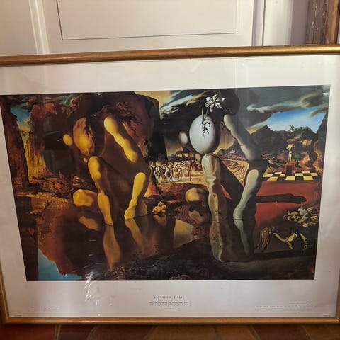 Remedios Varo (1908-1963) - catalansk surrealist, ble etter flukten fra Europa del av den surrealistiske bevegelsen i Mexico City. Hennes malerier har ofte magiske/overnaturlige elementer. Motivet heter "Embroidering the Earth's Mantle". Utstillingsplakat fra Museo de Arte Moderno i Mexico City. Veldig god kvalitet innramming og glass.