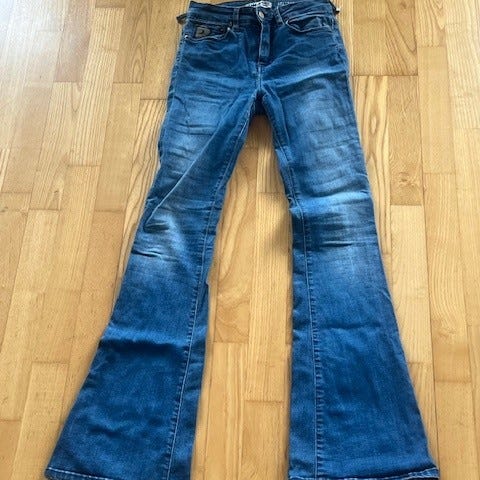 Lois Denim jeans i blå farge, størrelse W25 og lengde 32. Kjøpt på høyer, for 1600kr nå koster de rundt 1500kr . De heter: Lois raval high rise flare.