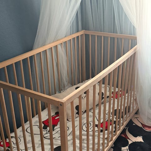 Selger ny barneseng, ubrukt og uten tegn til bruk. Babyen har sovet sammen med oss i sengen, derfor har den ikke blitt brukt.