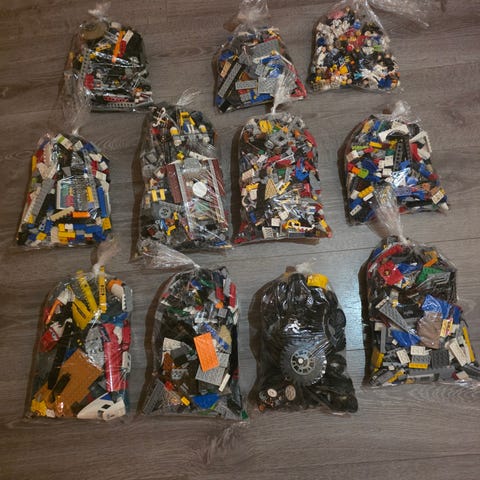 Selges billig da det bærer preg av å ha stått i en kjeller. Men med en vask, så er det utrolig mye lego for penga! 🙂 Kun 75kr/kg ⭐️👍