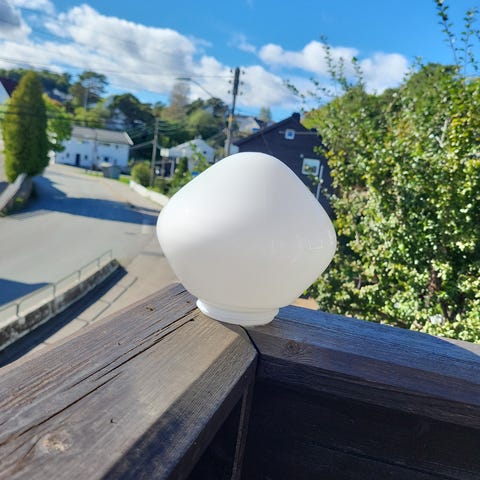 Retro utelampe frå 50-60 talet, for rett vegg. Lampa er laga av lettmetall, som ikkje ruster. Den har den originale lakken, og som bilda viser så er lakken nokså patinert. Eventuell kjøper kan bestemme om hen vil ha lampa som den er, eller om eg skal lakke den i en ønsket farge før levering. Alterativt til Fiks Ferdig kan den sendes med Posten/Postnord for 73/69 kroner.