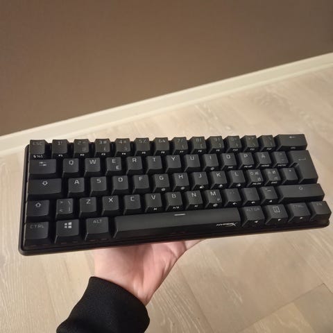 Tastaturet har HyperX sine mekaniske brytere og svært god RGB-belysning med klare farger (kan tilpasses via HyperX NGENUITY-programvare). Meget behagelig å skrive på og kjent for høy byggekvalitet.