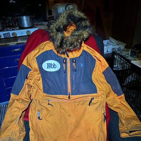 Den er stor i størrelsen ( L ), bruker selv XXL. Anorakken beskytter mot ekstrem kulde og vind