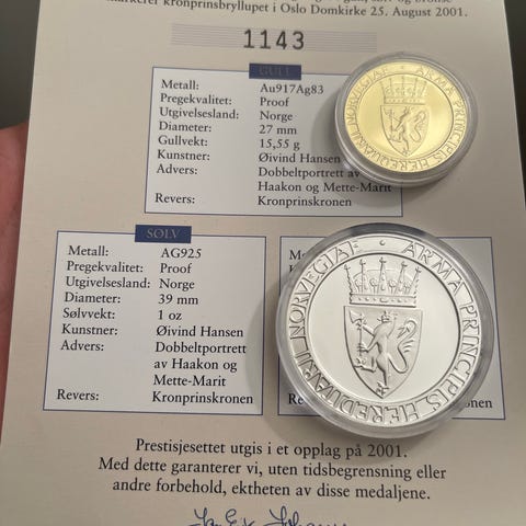 Tre gullmynter som tilsvarer 1,5 oz rent gull alle tre er norskproduserte og kommer med sertifikat.