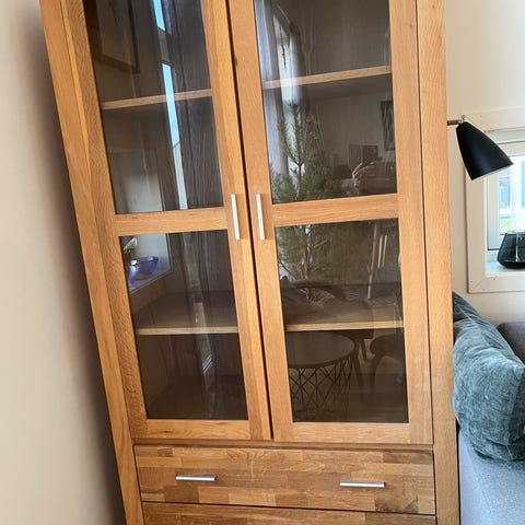 Pent brukt vitrineskap i eik med lys 1000kr for begge, di kan delles