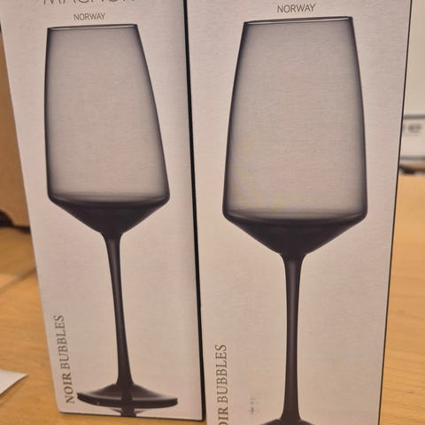 Magnor Glassverk XO Bobler vinglass. Glassene har et elegant design med tynne stilker og en lett fargetone. Egnet for servering av boblevin og andre viner.