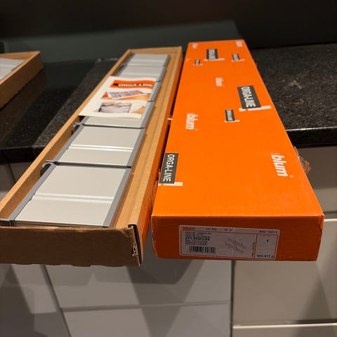 Orga-line blum rominndeler til 60 skuff. Esken er åpnet, ellers ubrukt. Har også 1 stk som er åpnet. Denne er tatt ut 1 stk del. Denne følger med på kjøpet